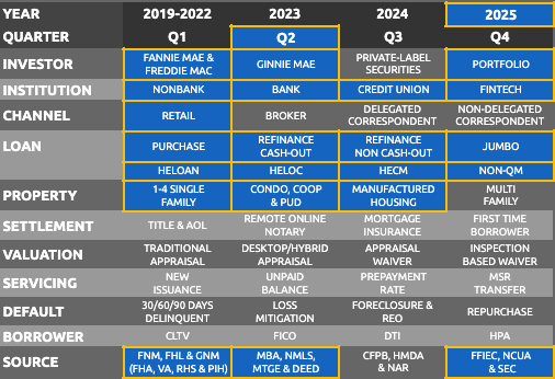 Top Retail Originators in Q2 2025, showing Purchase and Refinance Loan Counts for Conventional, Government and Home Equity Lending. Allows users to understand which lenders are directly originating loans and lines-of-credit for the most recent quarter. Excludes brokered and correspondent purchased loans.