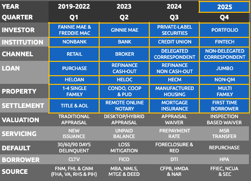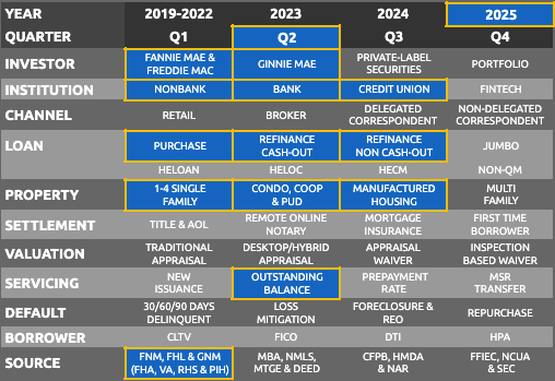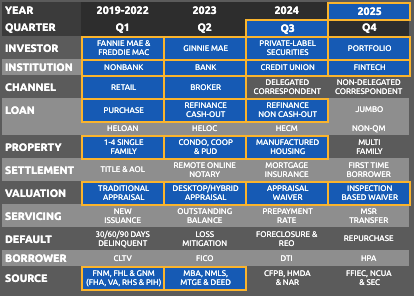 Shows all ~1,650 Agency Servicers in August 2025, including loan counts for Fannie Mae, Freddie Mac, FHA, VA, PIH and RHS loans, plus purchase and refinance. Each servicer has a unique ID, Standardized Servicer Name and Institution Type.