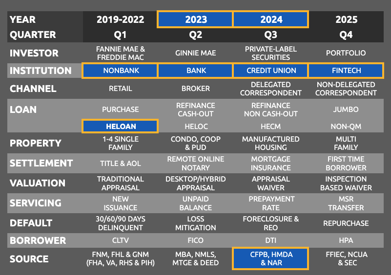All Financial Institutions reporting HELOAN applications and loans in 2023 and 2024, including 3,890+ Banks, Credit Unions and Non-banks with Address, City, State, Zip, Website and Phone Number. Provides data by Institution Type and by Institution, including Number and Value of HELOAN Applications and Fundings. Plus Number and Value of HELOAN Applications Declined, with % Denied for Low Credit Score, % Denied for High LTV Ratio, % Denied for High DTI and % Denied for Employment Issues