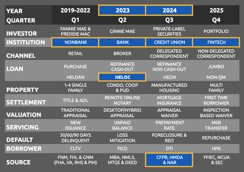 All Financial Institutions reporting HELOC applications and loans in 2023 and 2024, including 1,200+ Banks, Credit Unions and Non-banks with Address, City, State, Zip, Website and Phone Number. Provides data by Institution Type and by Institution, including Number and Value of HELOC Applications and Fundings. Plus Number and Value of HELOC Applications Declined, with % Denied for Low Credit Score, % Denied for High LTV Ratio, % Denied for High DTI and % Denied for Employment Issues